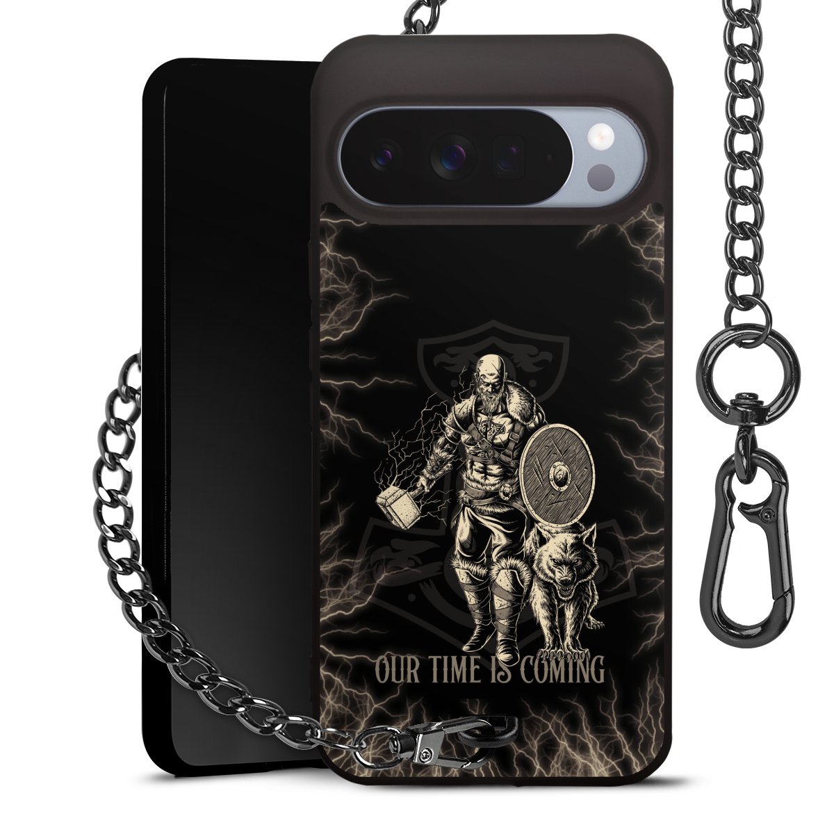 • Mattschwarze Handyhülle mit Metallkette