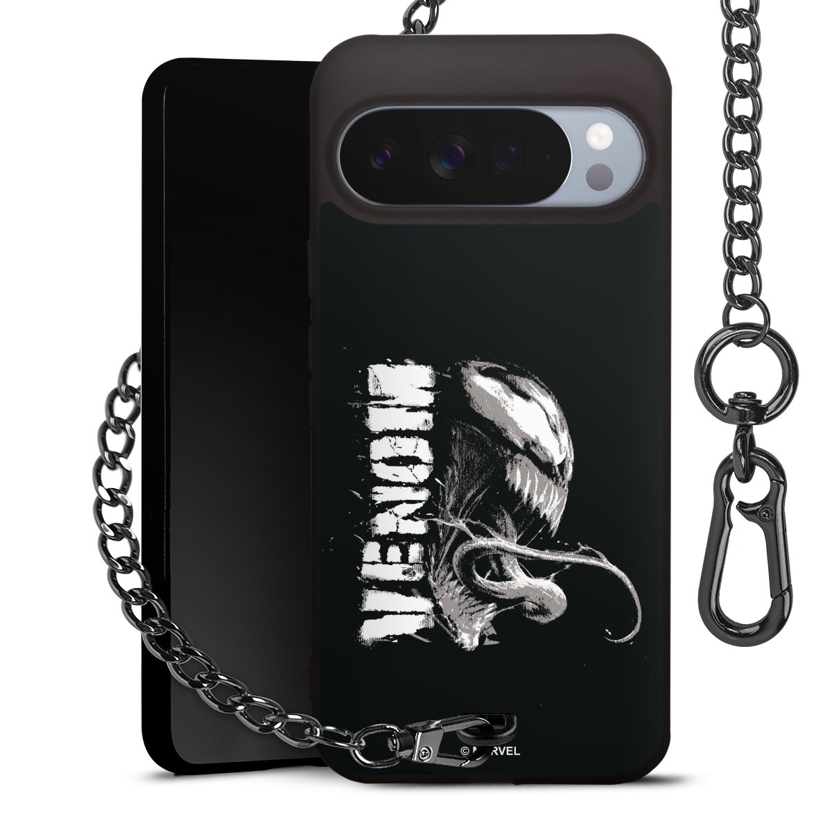 Die mattschwarze Silikon-Handyhülle besteht aus robustem TPU (thermoplastisches Polyurethan). Sie ist flexibel und schützt Dein Smartphone vor Stößen und Kratzern. Die Kette sowie der Karabinerhaken sind aus Metall in Gunmetal-Optik gefertigt. Für dieses Produkt kommen ausschließlich TÜV-geprüfte Materialien zum Einsatz.