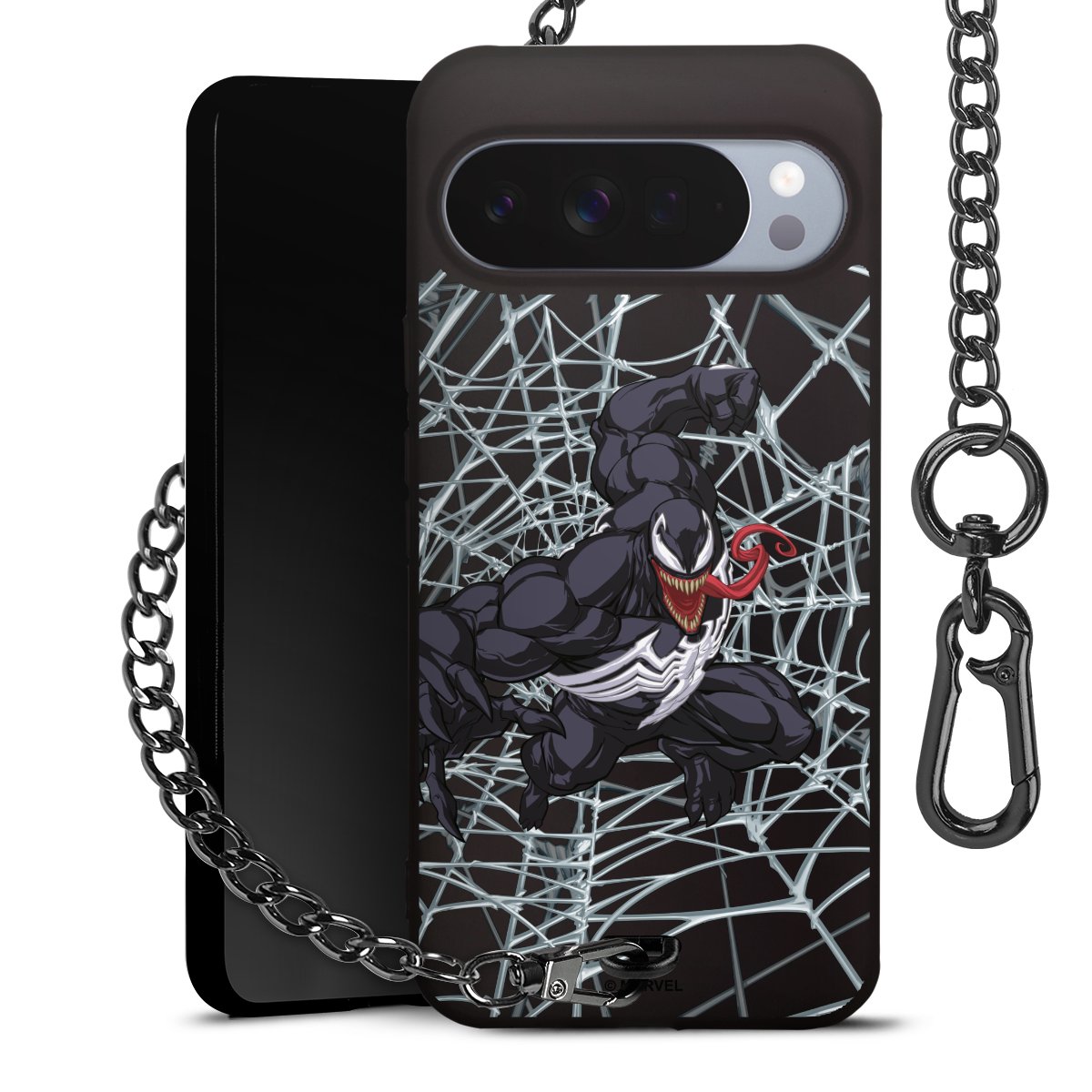Die mattschwarze Silikon-Handyhülle besteht aus robustem TPU (thermoplastisches Polyurethan). Sie ist flexibel und schützt Dein Smartphone vor Stößen und Kratzern. Die Kette sowie der Karabinerhaken sind aus Metall in Gunmetal-Optik gefertigt. Für dieses Produkt kommen ausschließlich TÜV-geprüfte Materialien zum Einsatz.