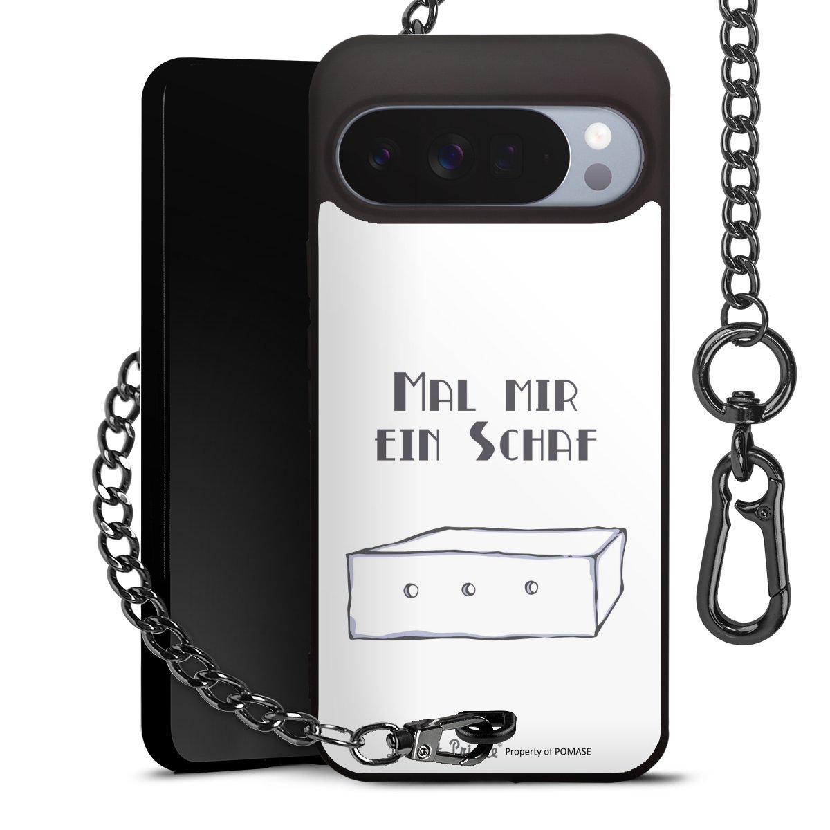 Die mattschwarze Silikon-Handyhülle besteht aus robustem TPU (thermoplastisches Polyurethan). Sie ist flexibel und schützt Dein Smartphone vor Stößen und Kratzern. Die Kette sowie der Karabinerhaken sind aus Metall in Gunmetal-Optik gefertigt. Für dieses Produkt kommen ausschließlich TÜV-geprüfte Materialien zum Einsatz.