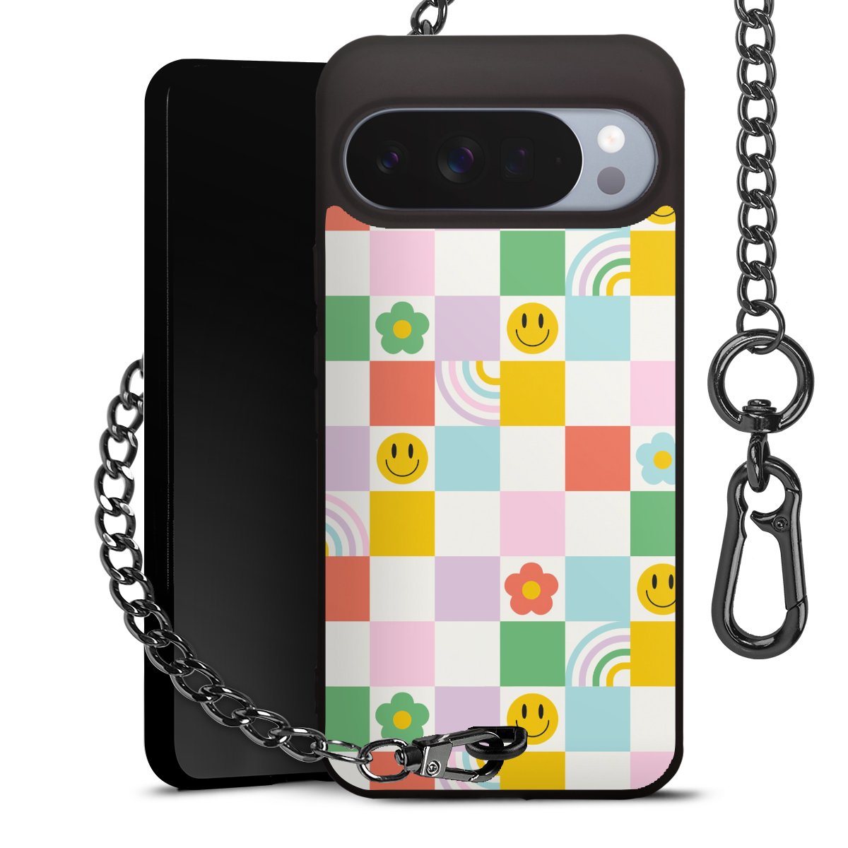 • Mattschwarze Handyhülle mit Metallkette