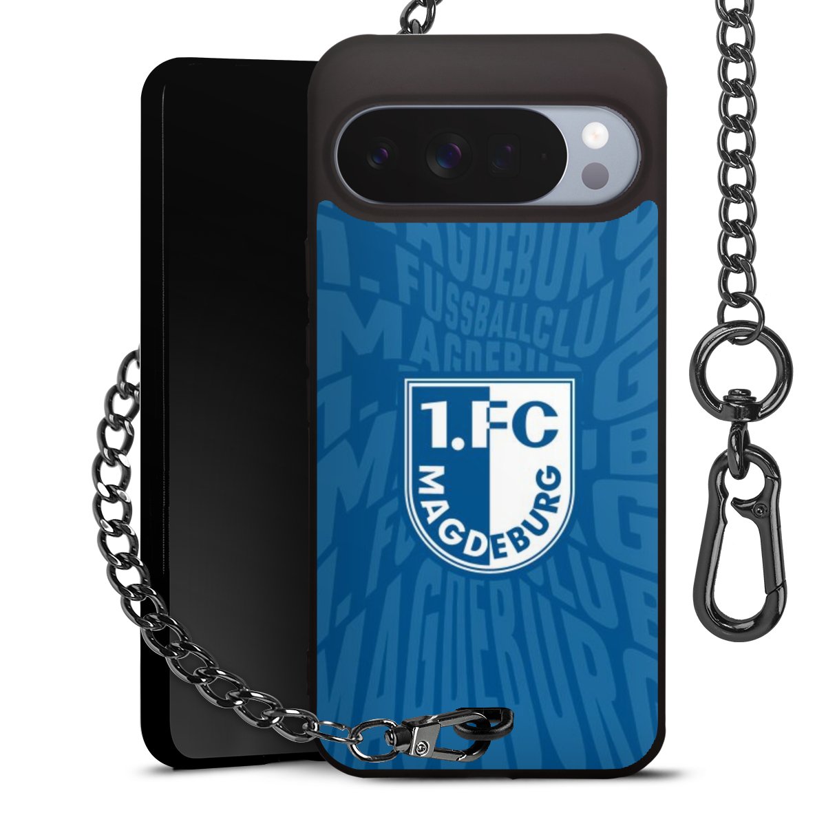 - Mattschwarze Handyhülle mit Metallkette