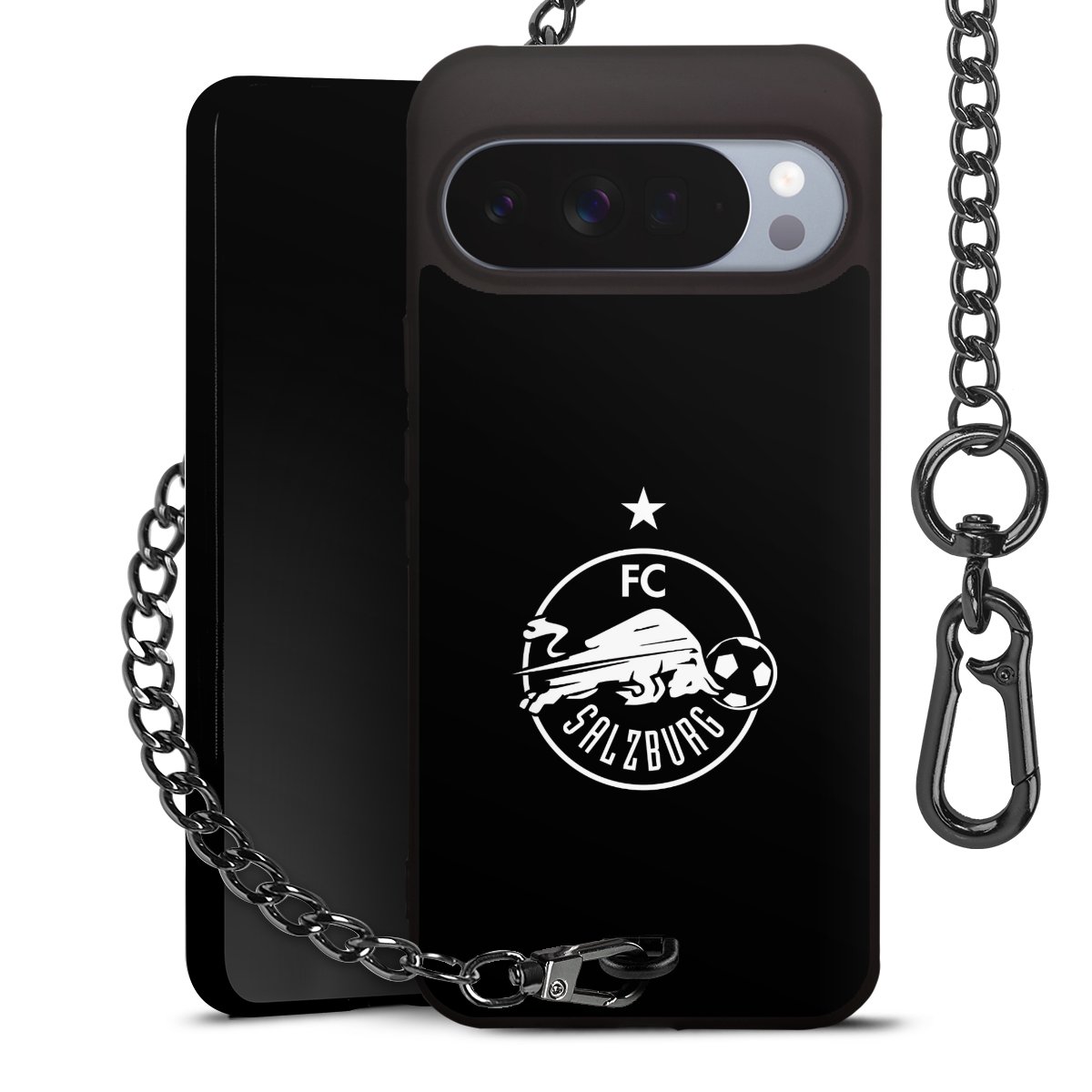 • Mattschwarze Handyhülle mit Metallkette