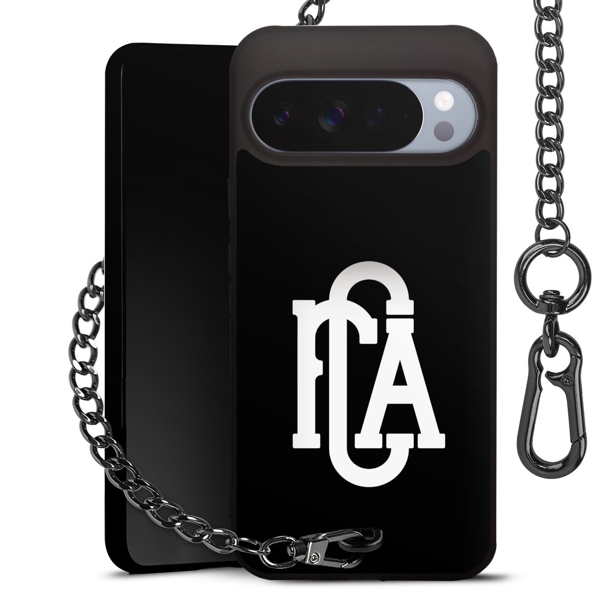 • Mattschwarze Handyhülle mit Metallkette
