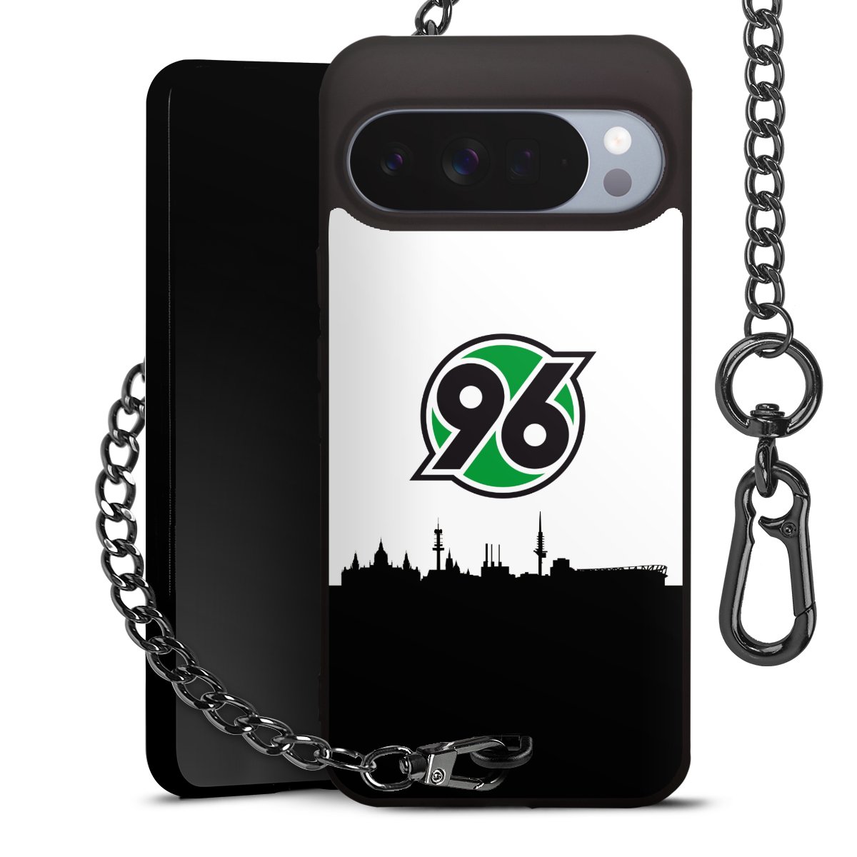 Die mattschwarze Silikon-Handyhülle besteht aus robustem TPU (thermoplastisches Polyurethan). Sie ist flexibel und schützt Dein Smartphone vor Stößen und Kratzern. Die Kette sowie der Karabinerhaken sind aus Metall in Gunmetal-Optik gefertigt. Für dieses Produkt kommen ausschließlich TÜV-geprüfte Materialien zum Einsatz.