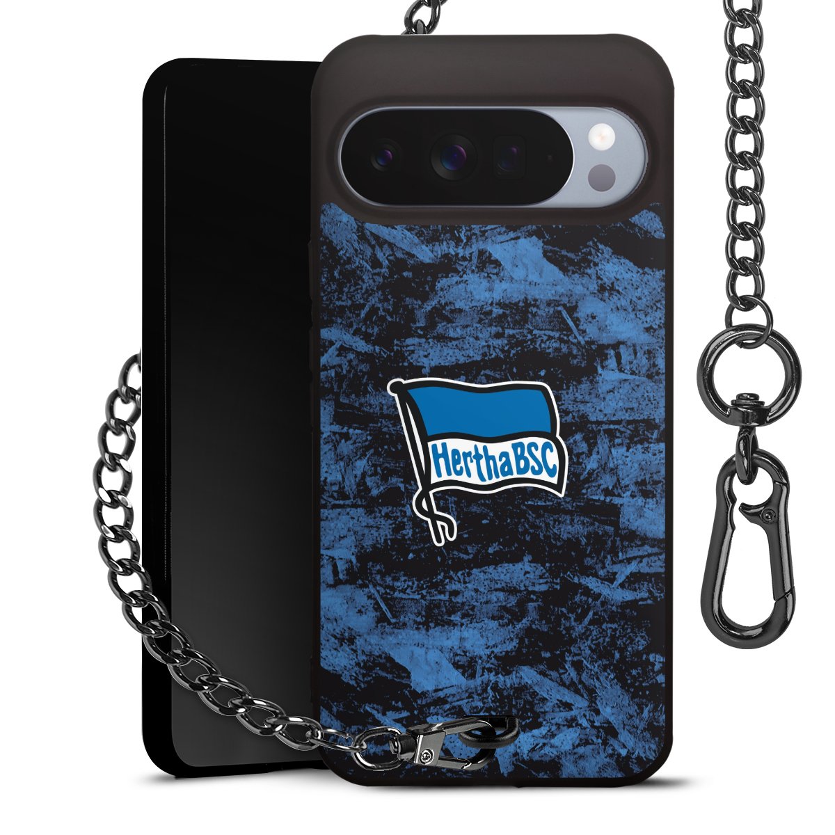 Die mattschwarze Silikon-Handyhülle besteht aus robustem TPU (thermoplastisches Polyurethan). Sie ist flexibel und schützt Dein Smartphone vor Stößen und Kratzern. Die Kette sowie der Karabinerhaken sind aus Metall in Gunmetal-Optik gefertigt. Für dieses Produkt kommen ausschließlich TÜV-geprüfte Materialien zum Einsatz.