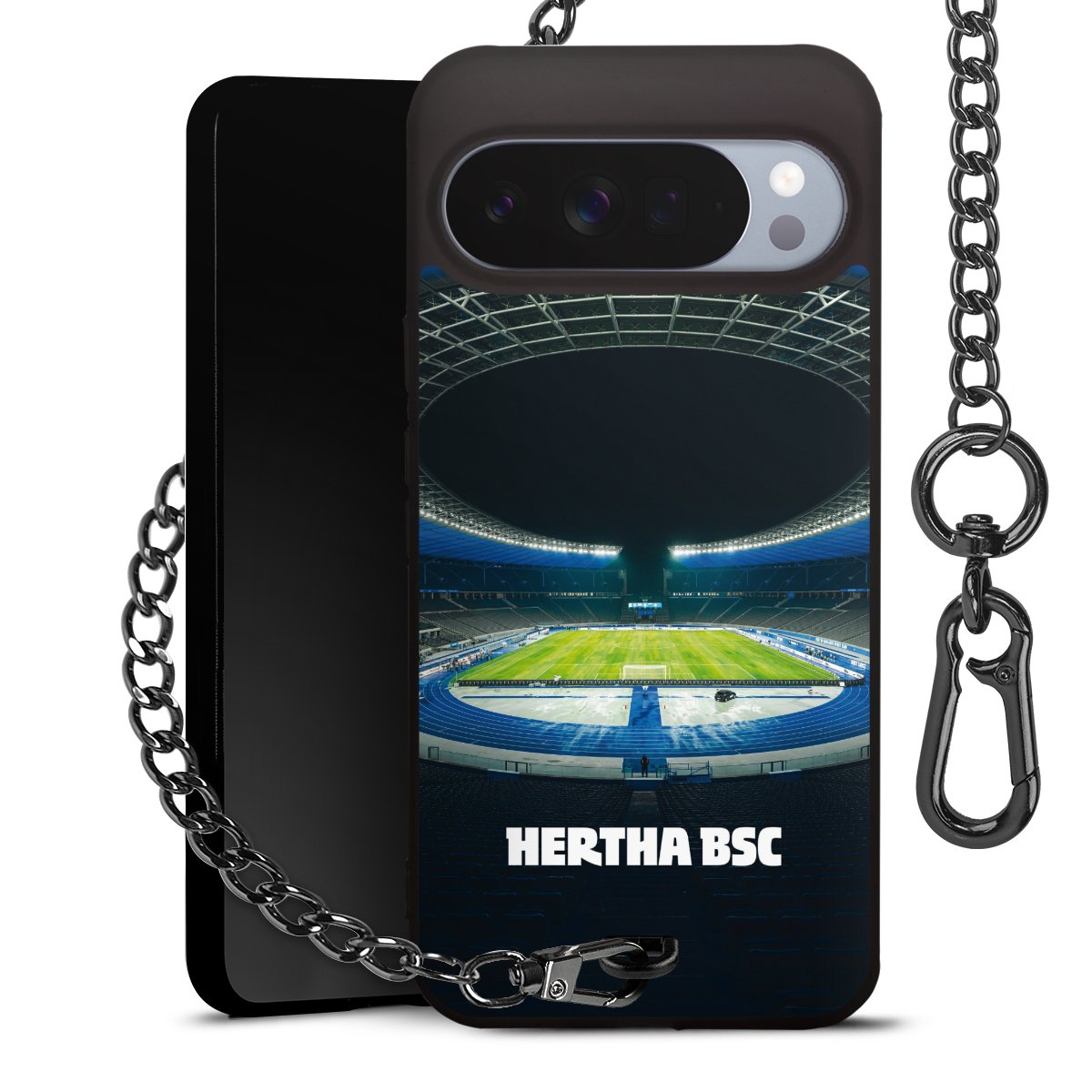 • Mattschwarze Handyhülle mit Metallkette