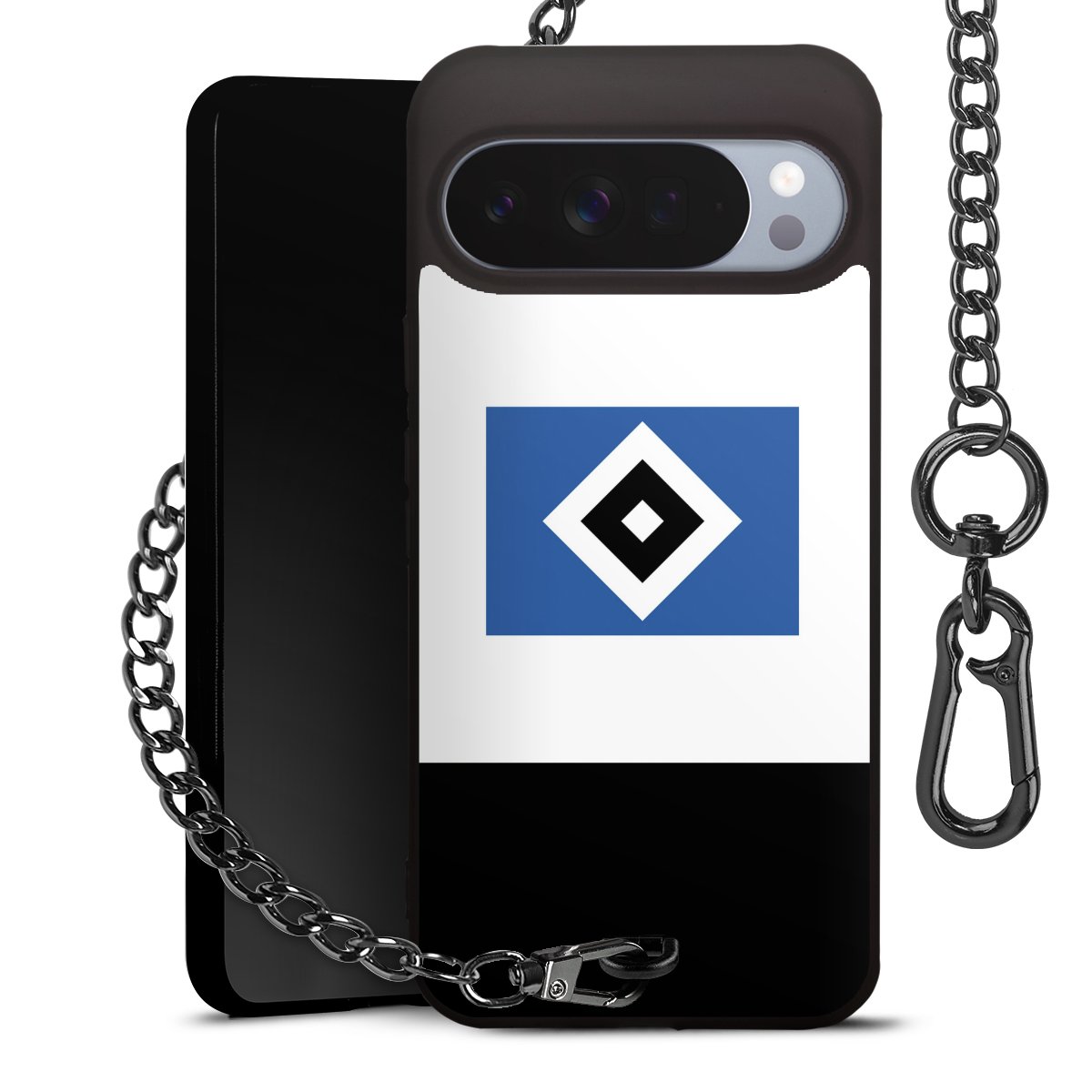 Die mattschwarze Silikon-Handyhülle besteht aus robustem TPU (thermoplastisches Polyurethan). Sie ist flexibel und schützt Dein Smartphone vor Stößen und Kratzern. Die Kette sowie der Karabinerhaken sind aus Metall in Gunmetal-Optik gefertigt. Für dieses Produkt kommen ausschließlich TÜV-geprüfte Materialien zum Einsatz.