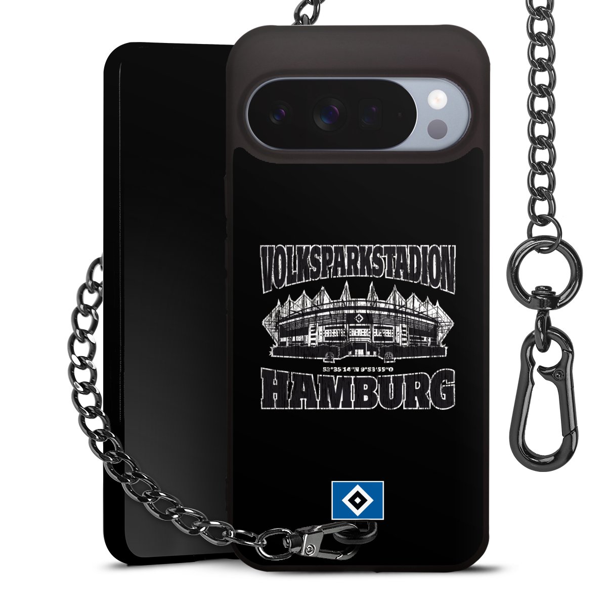 Die mattschwarze Silikon-Handyhülle besteht aus robustem TPU (thermoplastisches Polyurethan). Sie ist flexibel und schützt Dein Smartphone vor Stößen und Kratzern. Die Kette sowie der Karabinerhaken sind aus Metall in Gunmetal-Optik gefertigt. Für dieses Produkt kommen ausschließlich TÜV-geprüfte Materialien zum Einsatz.