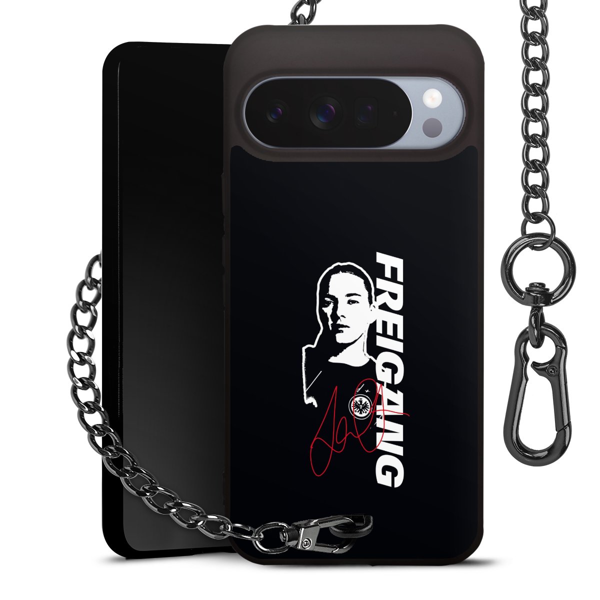• Mattschwarze Handyhülle mit Metallkette