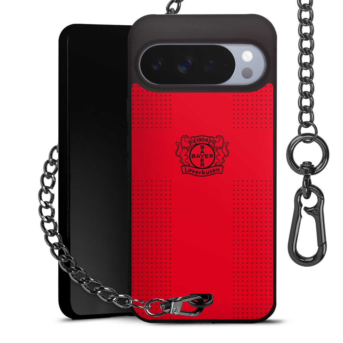 Die mattschwarze Silikon-Handyhülle besteht aus robustem TPU (thermoplastisches Polyurethan). Sie ist flexibel und schützt Dein Smartphone vor Stößen und Kratzern. Die Kette sowie der Karabinerhaken sind aus Metall in Gunmetal-Optik gefertigt. Für dieses Produkt kommen ausschließlich TÜV-geprüfte Materialien zum Einsatz.