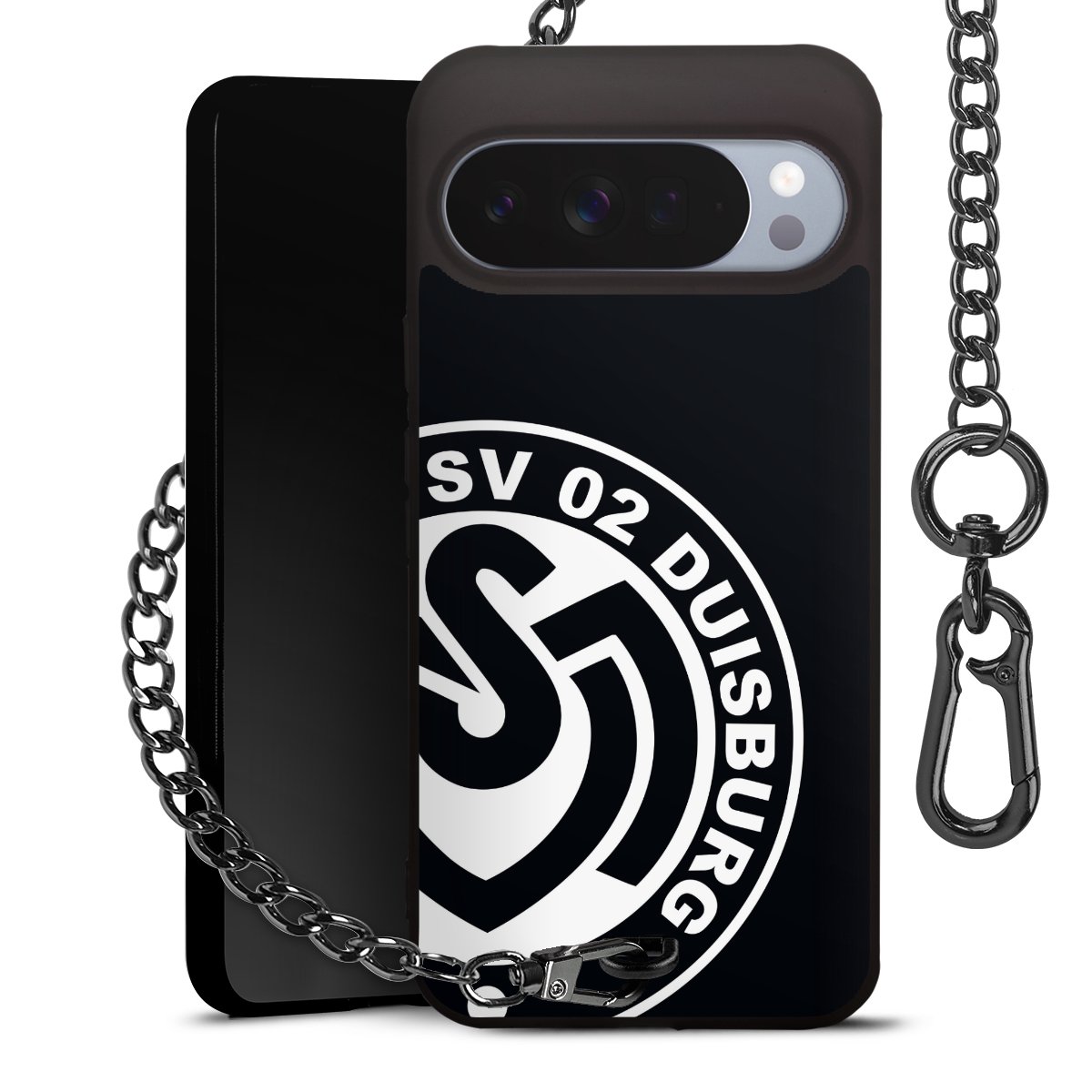 Die mattschwarze Silikon-Handyhülle besteht aus robustem TPU (thermoplastisches Polyurethan). Sie ist flexibel und schützt Dein Smartphone vor Stößen und Kratzern. Die Kette sowie der Karabinerhaken sind aus Metall in Gunmetal-Optik gefertigt. Für dieses Produkt kommen ausschließlich TÜV-geprüfte Materialien zum Einsatz.