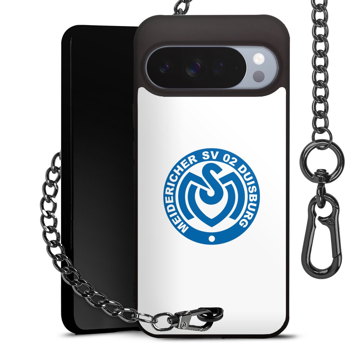 Die mattschwarze Silikon-Handyhülle besteht aus robustem TPU (thermoplastisches Polyurethan). Sie ist flexibel und schützt Dein Smartphone vor Stößen und Kratzern. Die Kette sowie der Karabinerhaken sind aus Metall in Gunmetal-Optik gefertigt. Für dieses Produkt kommen ausschließlich TÜV-geprüfte Materialien zum Einsatz.