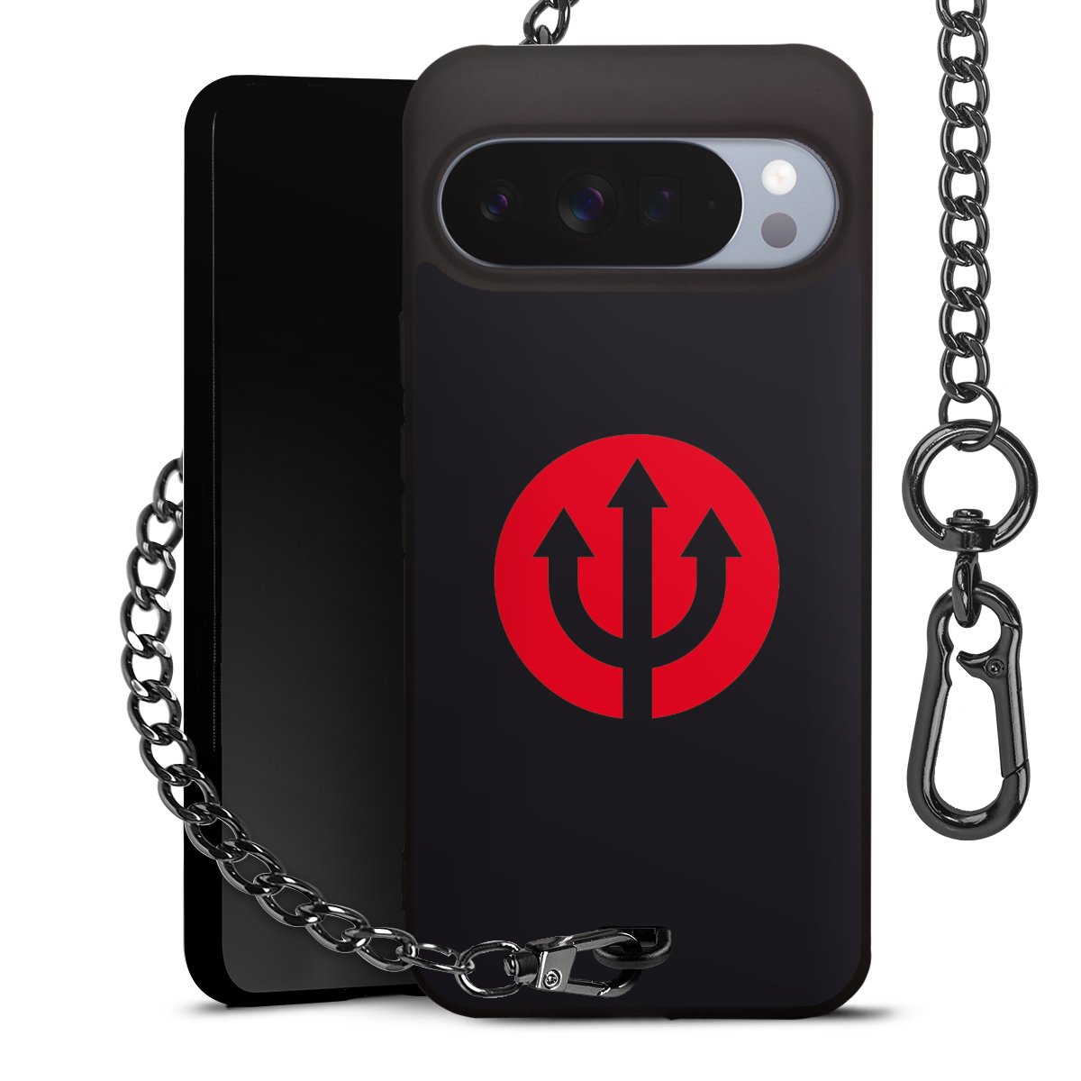 Die mattschwarze Silikon-Handyhülle besteht aus robustem TPU (thermoplastisches Polyurethan). Sie ist flexibel und schützt Dein Smartphone vor Stößen und Kratzern. Die Kette sowie der Karabinerhaken sind aus Metall in Gunmetal-Optik gefertigt. Für dieses Produkt kommen ausschließlich TÜV-geprüfte Materialien zum Einsatz.