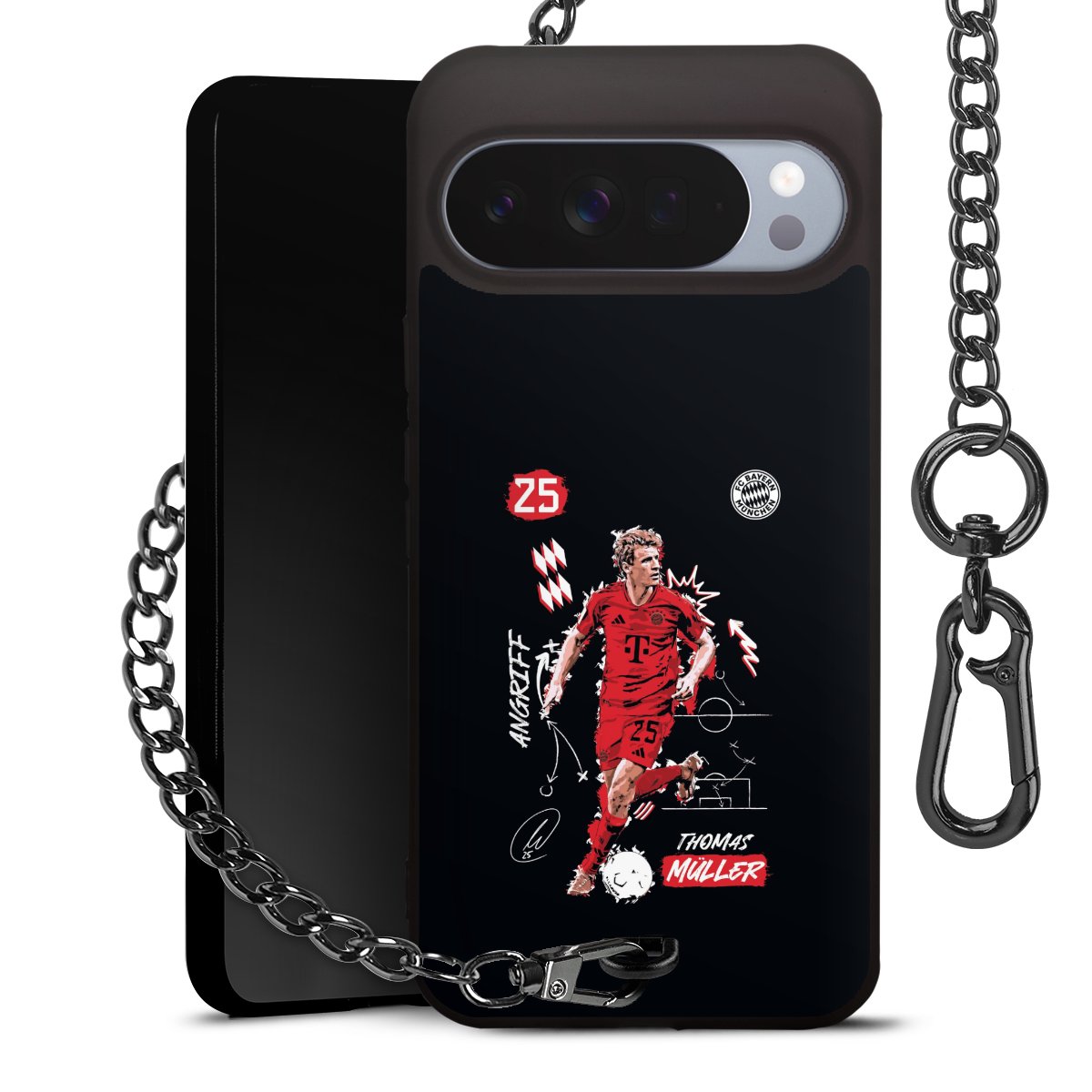 • Mattschwarze Handyhülle mit Metallkette