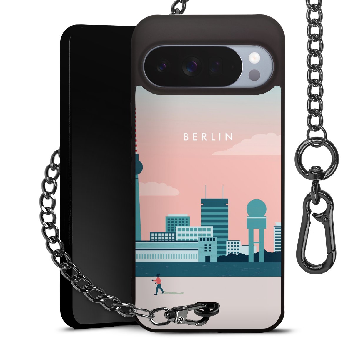 Die mattschwarze Silikon-Handyhülle besteht aus robustem TPU (thermoplastisches Polyurethan). Sie ist flexibel und schützt Dein Smartphone vor Stößen und Kratzern. Die Kette sowie der Karabinerhaken sind aus Metall in Gunmetal-Optik gefertigt. Für dieses Produkt kommen ausschließlich TÜV-geprüfte Materialien zum Einsatz.