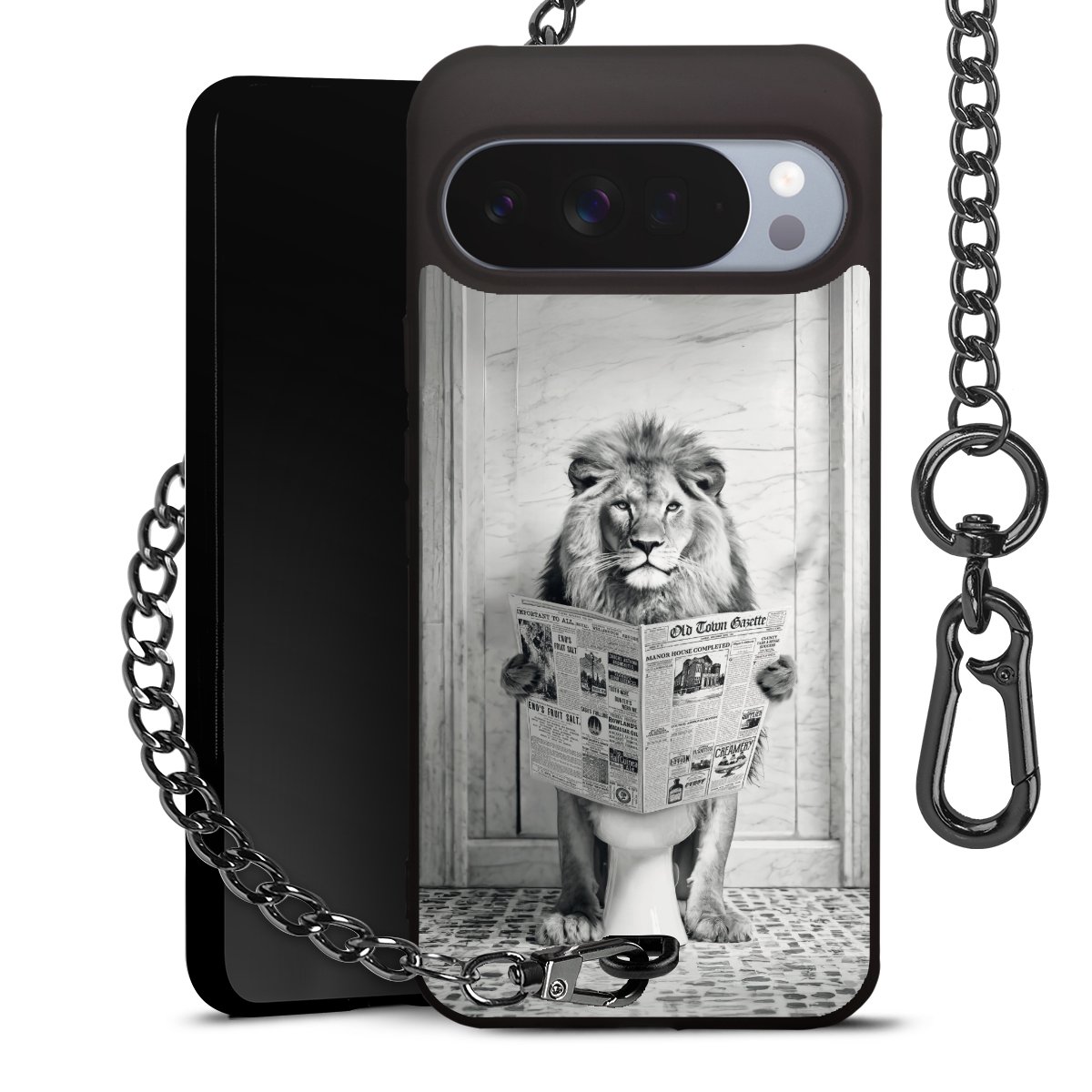 Die mattschwarze Silikon-Handyhülle besteht aus robustem TPU (thermoplastisches Polyurethan). Sie ist flexibel und schützt Dein Smartphone vor Stößen und Kratzern. Die Kette sowie der Karabinerhaken sind aus Metall in Gunmetal-Optik gefertigt. Für dieses Produkt kommen ausschließlich TÜV-geprüfte Materialien zum Einsatz.