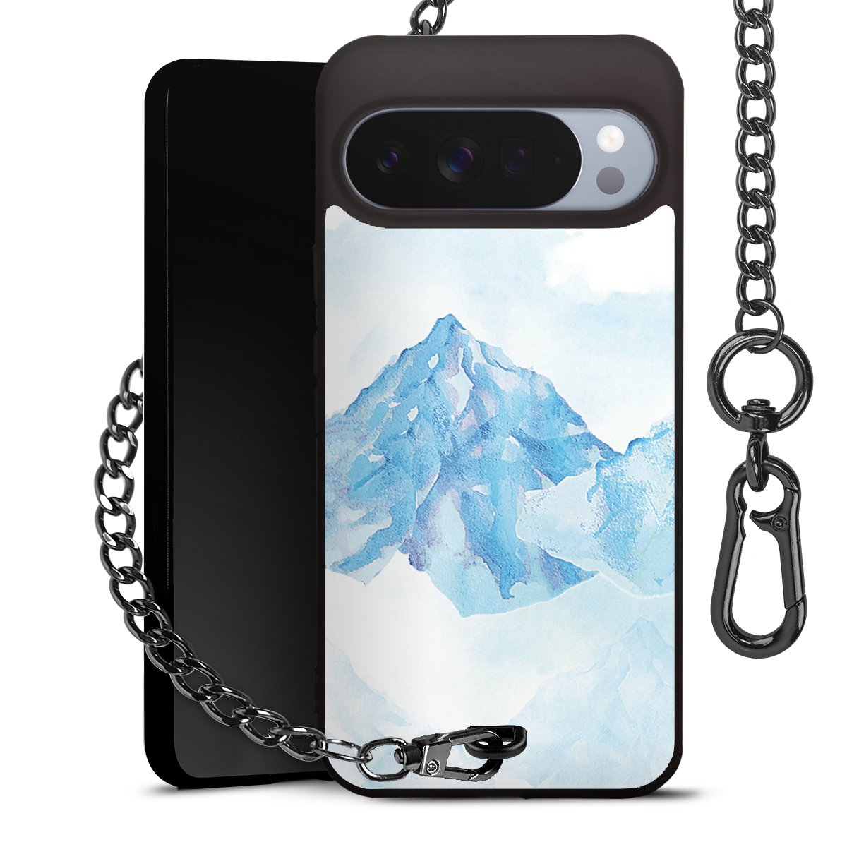 - Mattschwarze Handyhülle mit Metallkette