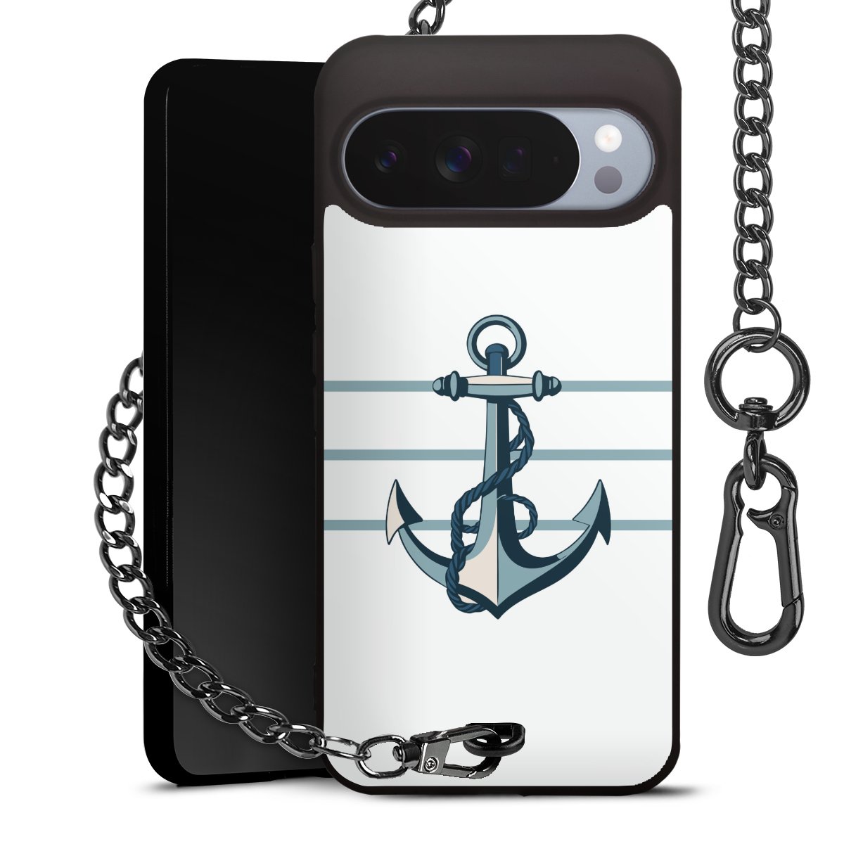 • Mattschwarze Handyhülle mit Metallkette