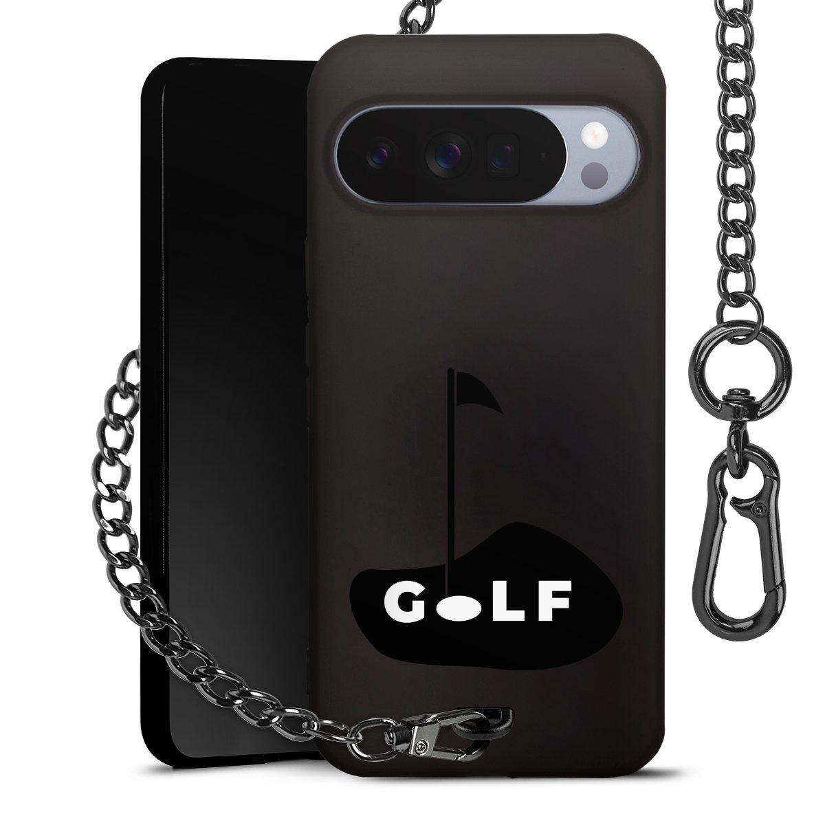 • Mattschwarze Handyhülle mit Metallkette