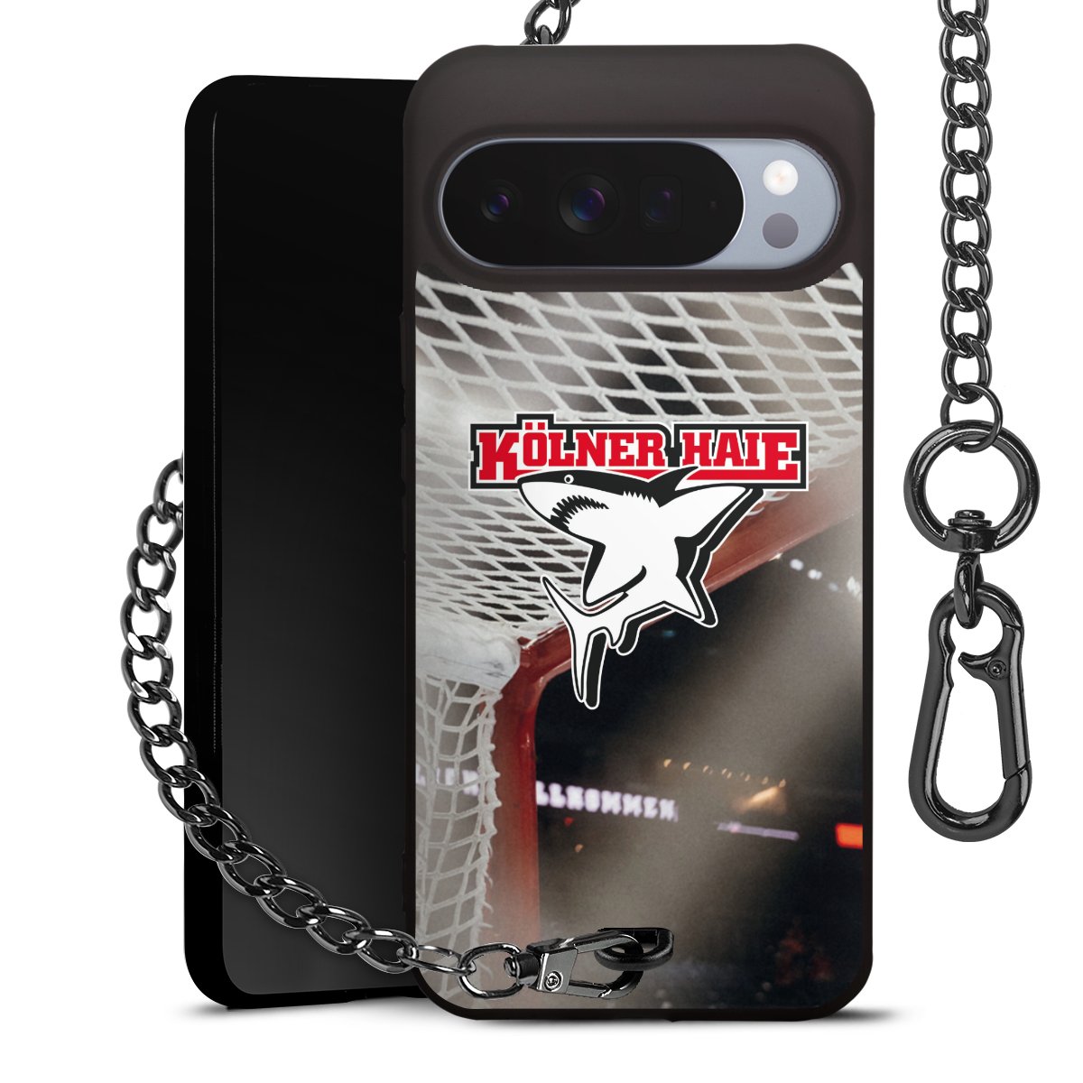 • Mattschwarze Handyhülle mit Metallkette
