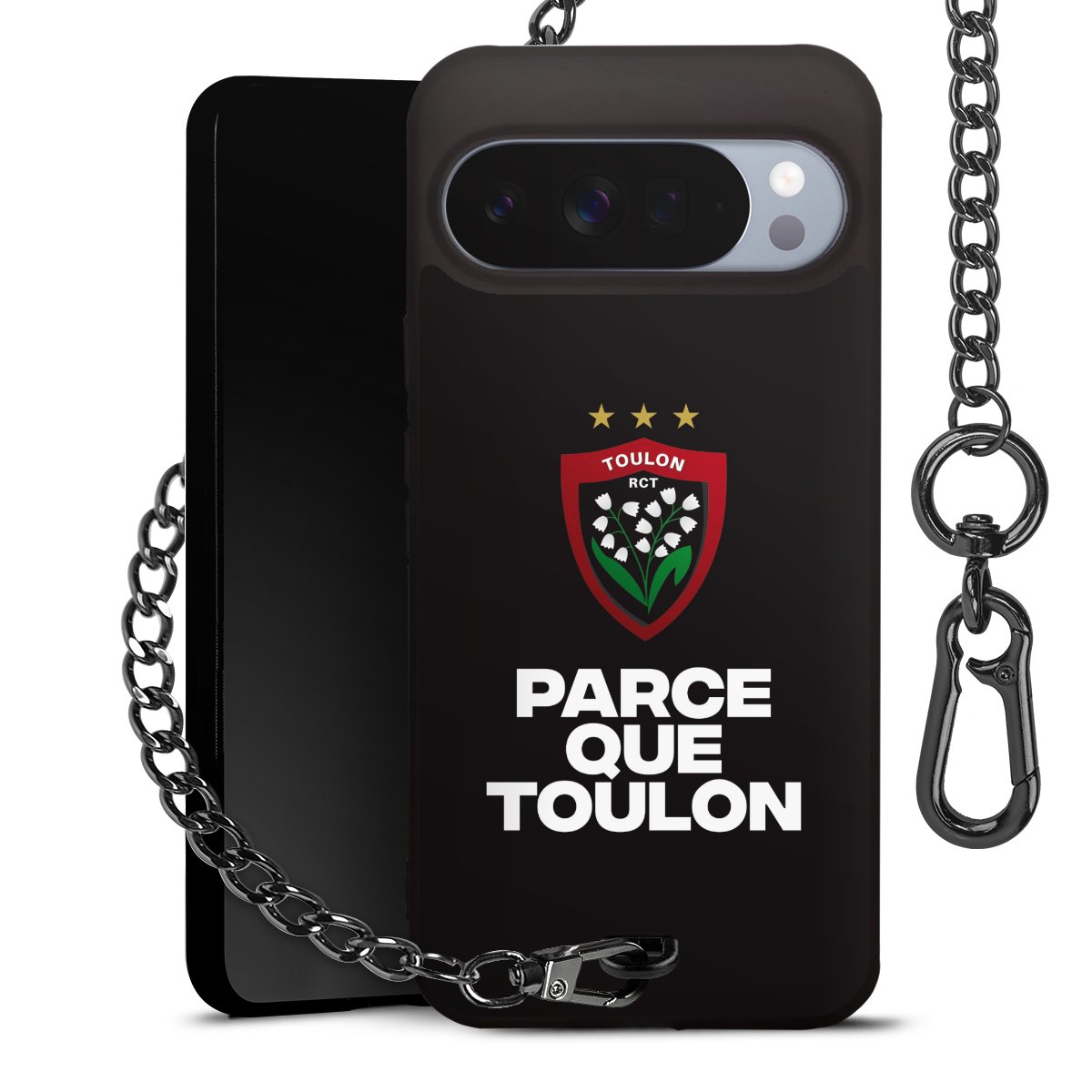 - Mattschwarze Handyhülle mit Metallkette