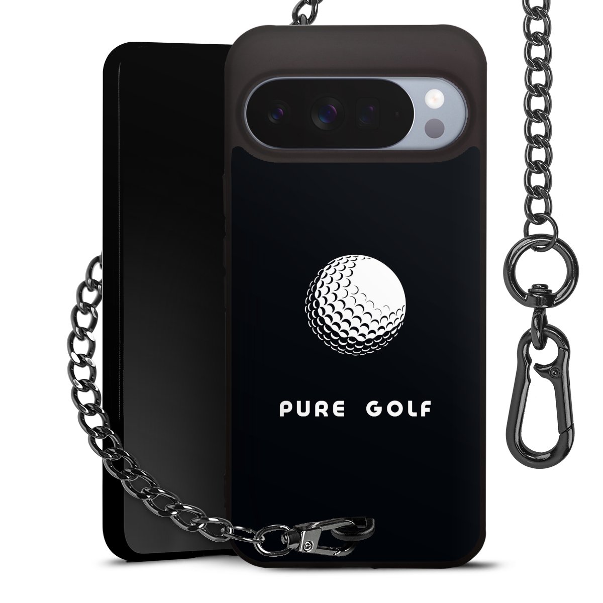 • Mattschwarze Handyhülle mit Metallkette