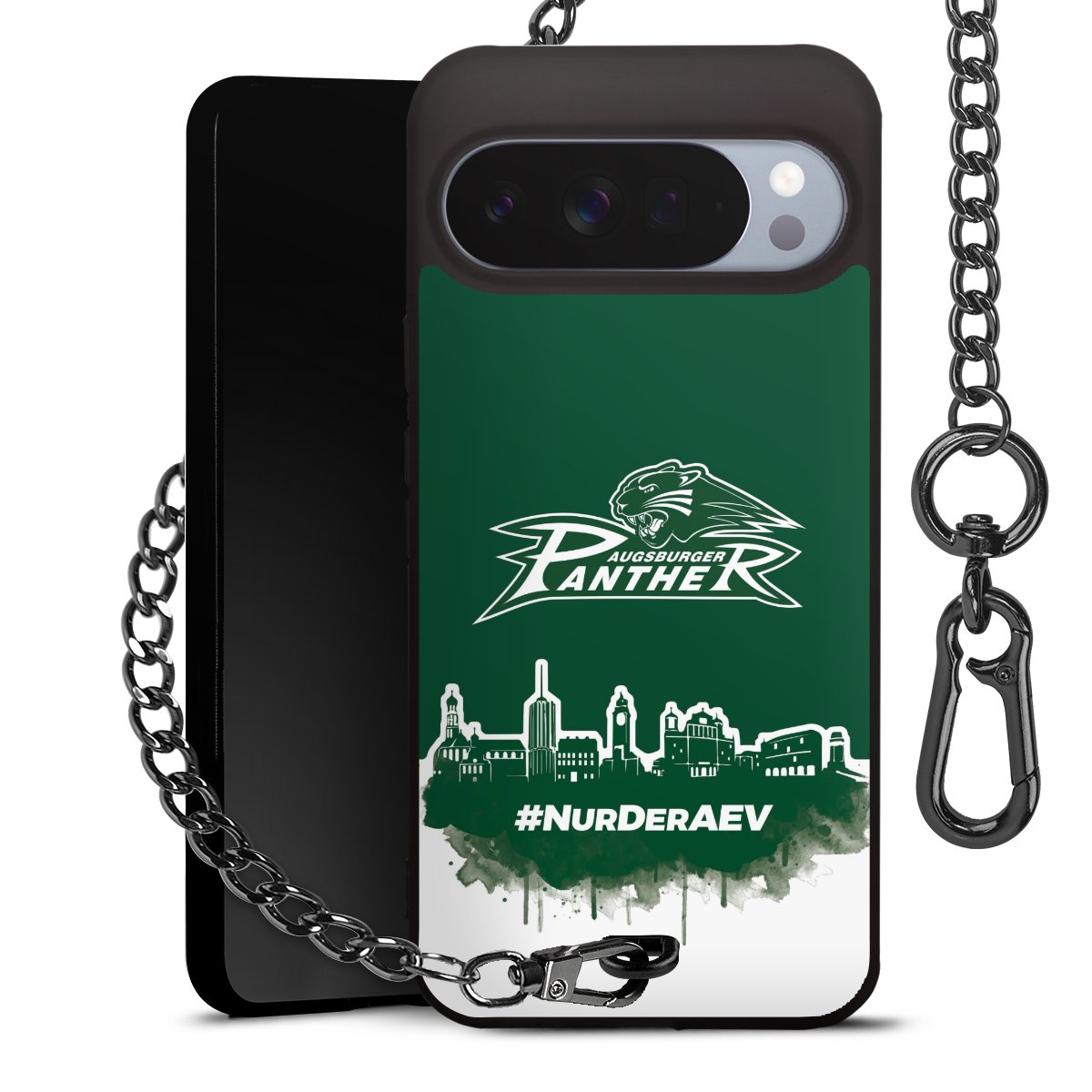 Die mattschwarze Silikon-Handyhülle besteht aus robustem TPU (thermoplastisches Polyurethan). Sie ist flexibel und schützt Dein Smartphone vor Stößen und Kratzern. Die Kette sowie der Karabinerhaken sind aus Metall in Gunmetal-Optik gefertigt. Für dieses Produkt kommen ausschließlich TÜV-geprüfte Materialien zum Einsatz.