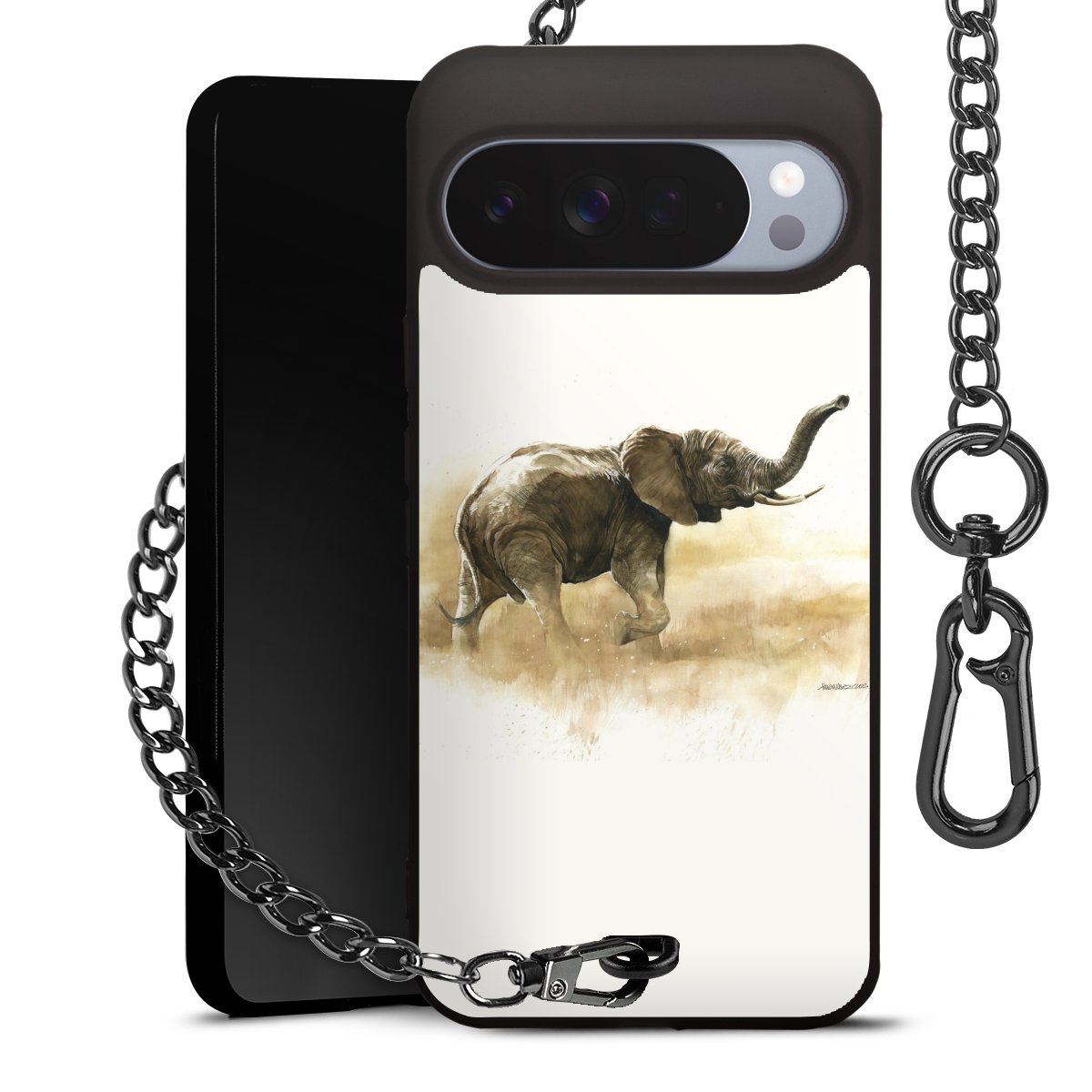 • Mattschwarze Handyhülle mit Metallkette