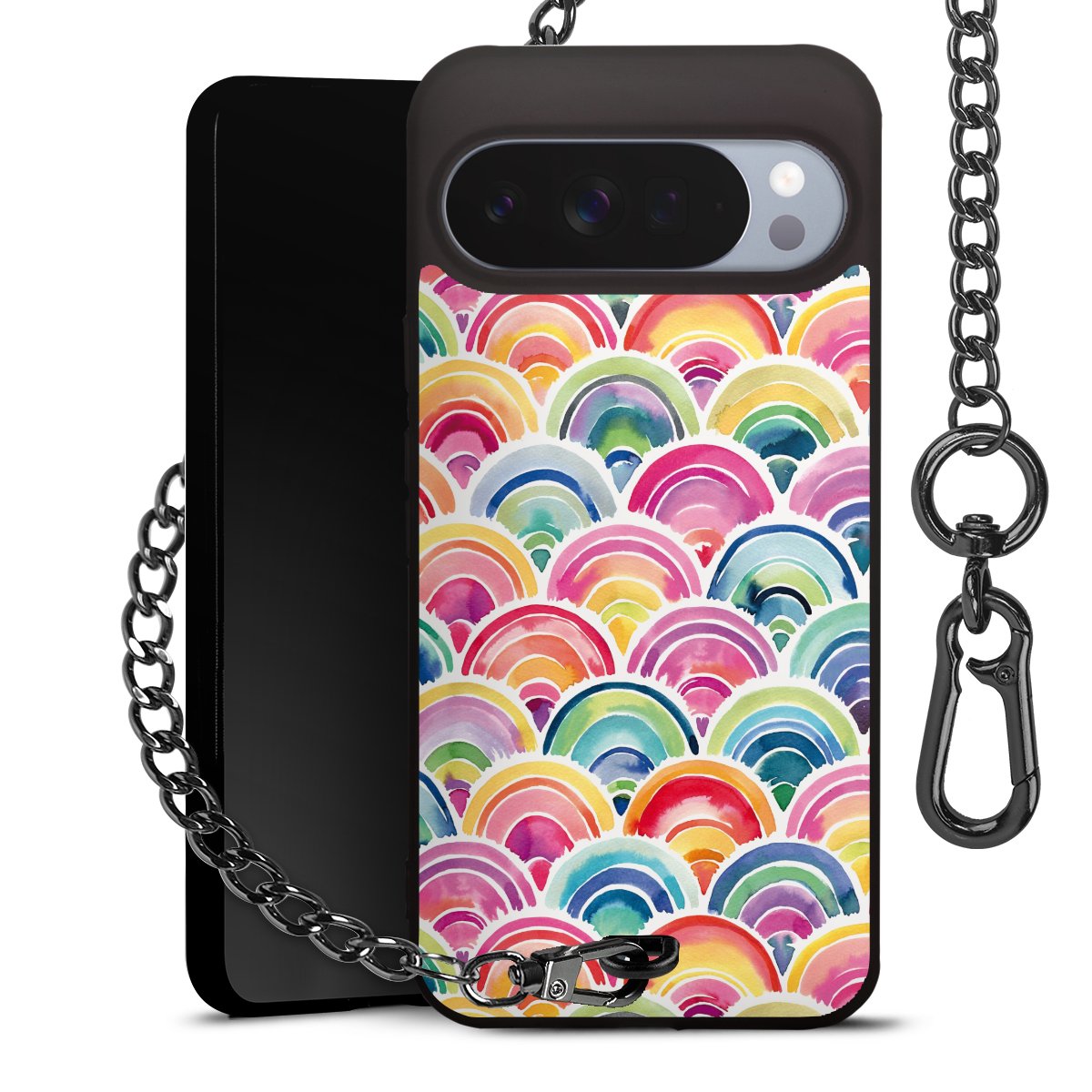 • Mattschwarze Handyhülle mit Metallkette