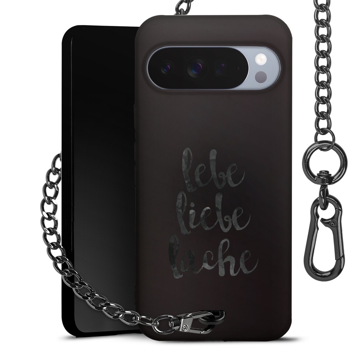 - Mattschwarze Handyhülle mit Metallkette
