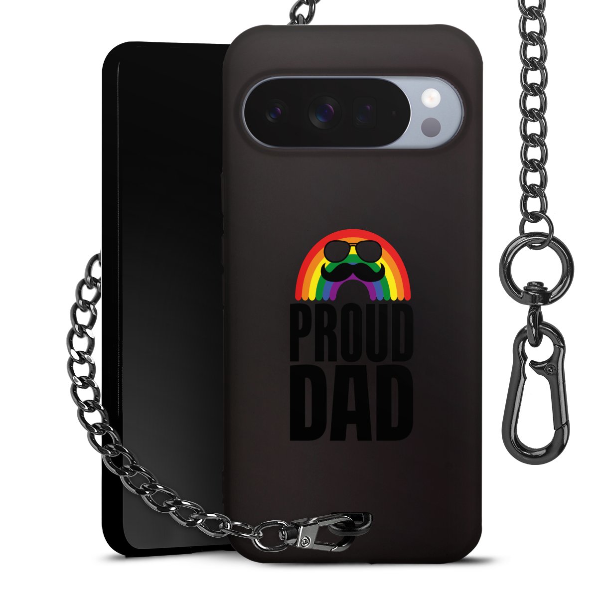 Die mattschwarze Silikon-Handyhülle besteht aus robustem TPU (thermoplastisches Polyurethan). Sie ist flexibel und schützt Dein Smartphone vor Stößen und Kratzern. Die Kette sowie der Karabinerhaken sind aus Metall in Gunmetal-Optik gefertigt. Für dieses Produkt kommen ausschließlich TÜV-geprüfte Materialien zum Einsatz.