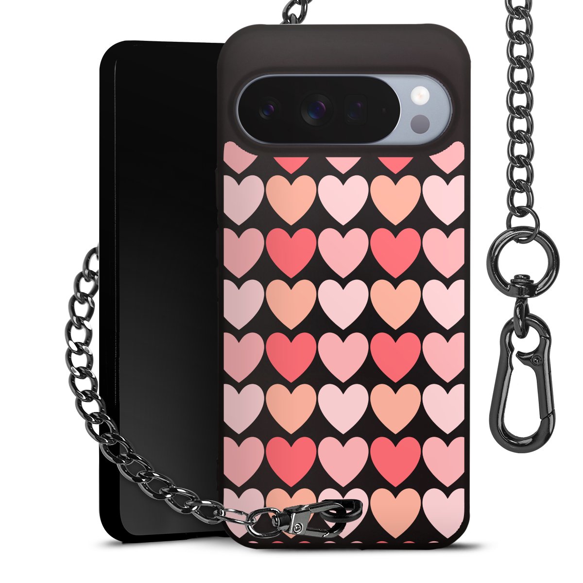 • Mattschwarze Handyhülle mit Metallkette