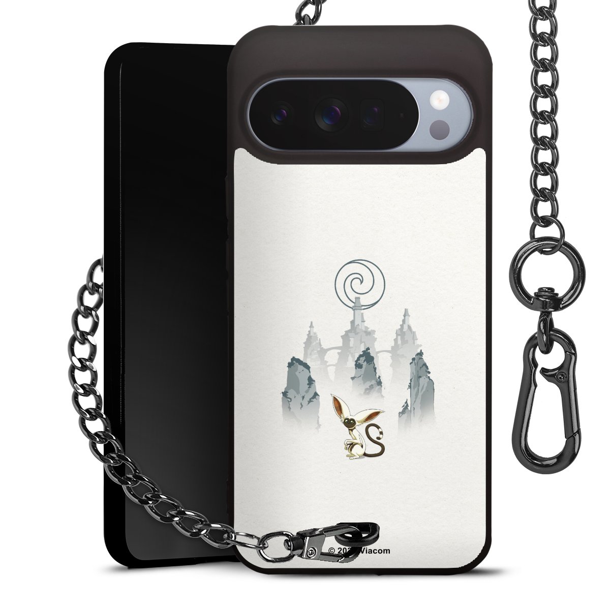 - Mattschwarze Handyhülle mit Metallkette