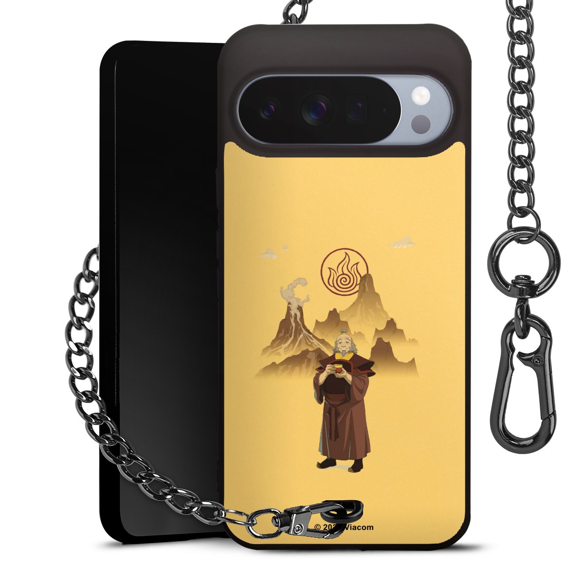 - Mattschwarze Handyhülle mit Metallkette