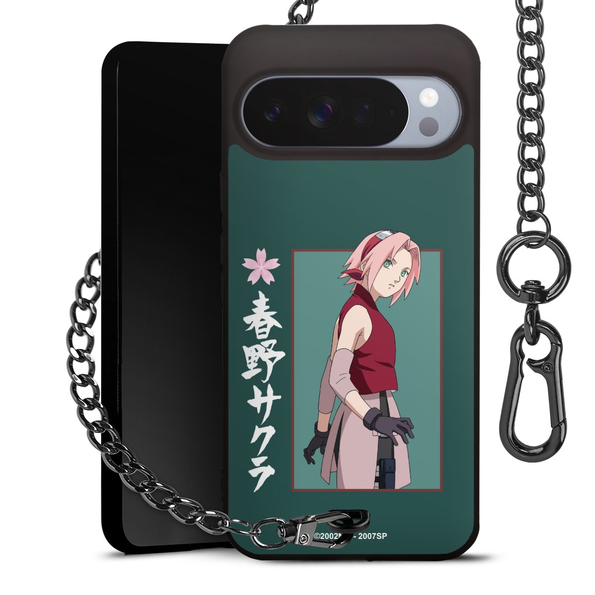 • Mattschwarze Handyhülle mit Metallkette