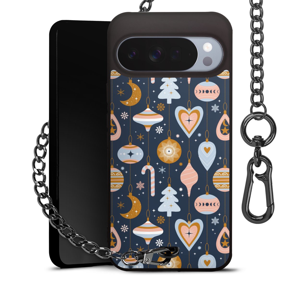 • Mattschwarze Handyhülle mit Metallkette
