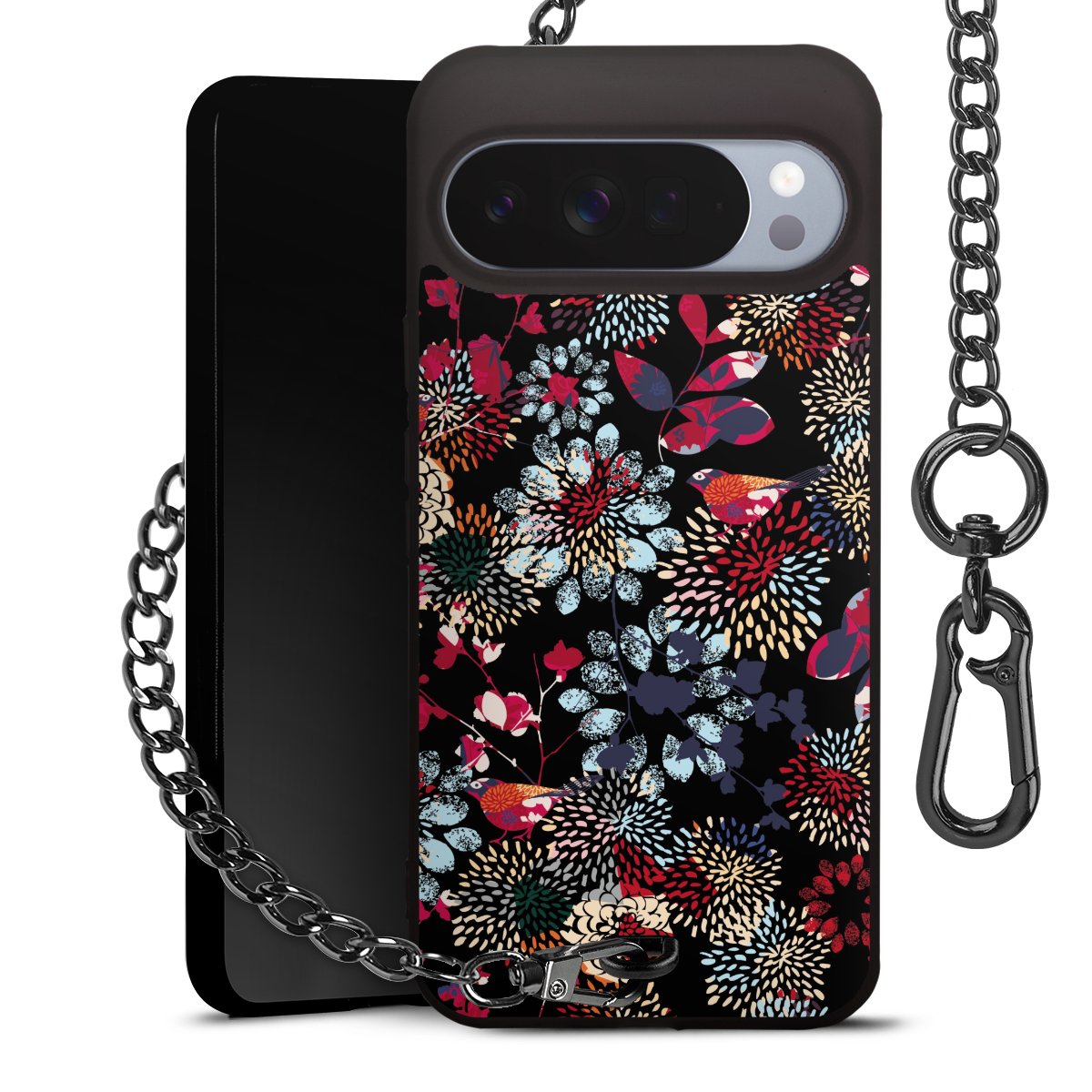 - Mattschwarze Handyhülle mit Metallkette