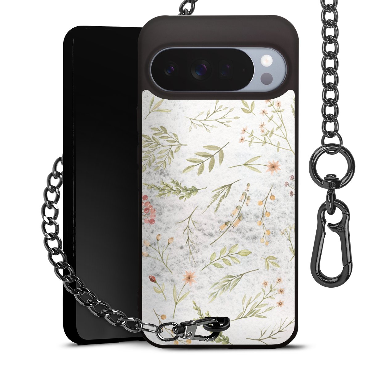 - Mattschwarze Handyhülle mit Metallkette