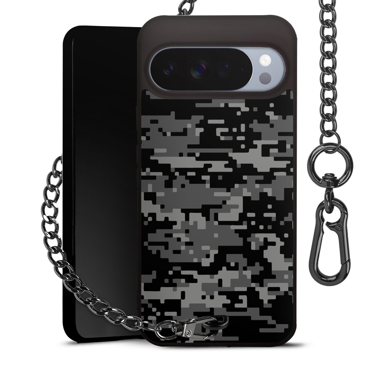 - Mattschwarze Handyhülle mit Metallkette