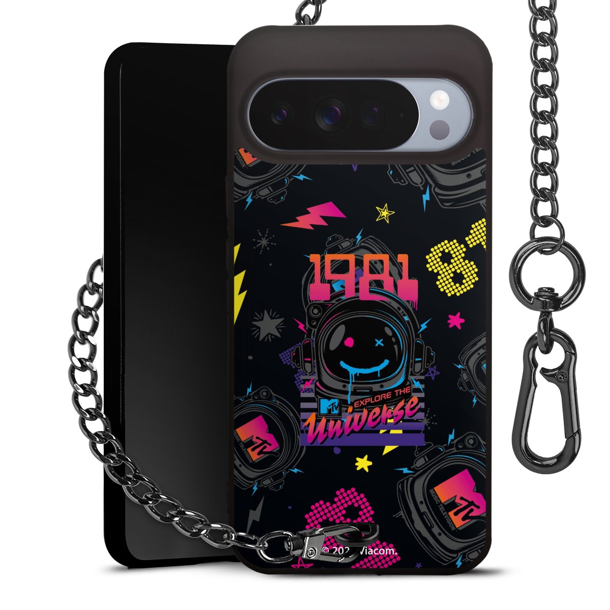Die mattschwarze Silikon-Handyhülle besteht aus robustem TPU (thermoplastisches Polyurethan). Sie ist flexibel und schützt Dein Smartphone vor Stößen und Kratzern. Die Kette sowie der Karabinerhaken sind aus Metall in Gunmetal-Optik gefertigt. Für dieses Produkt kommen ausschließlich TÜV-geprüfte Materialien zum Einsatz.