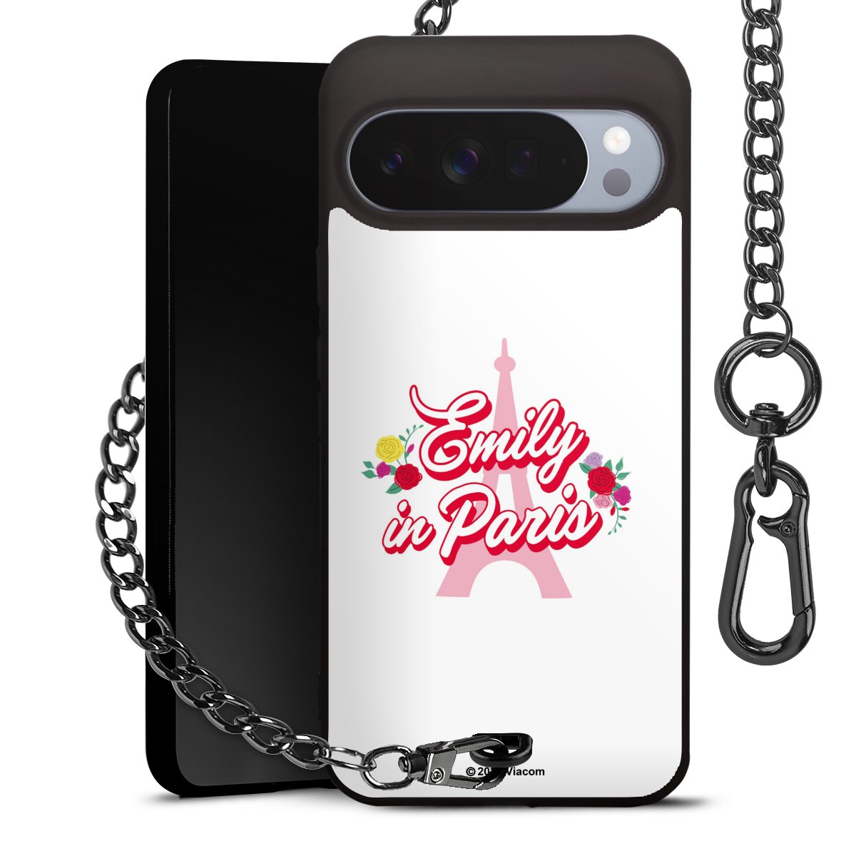 - Mattschwarze Handyhülle mit Metallkette