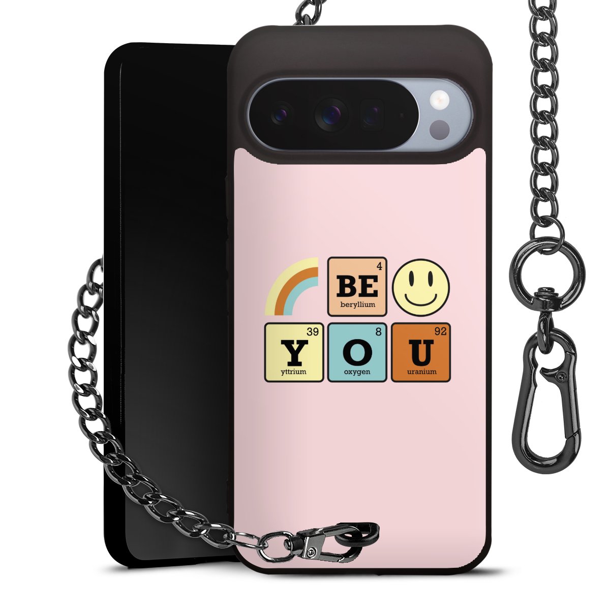 Die mattschwarze Silikon-Handyhülle besteht aus robustem TPU (thermoplastisches Polyurethan). Sie ist flexibel und schützt Dein Smartphone vor Stößen und Kratzern. Die Kette sowie der Karabinerhaken sind aus Metall in Gunmetal-Optik gefertigt. Für dieses Produkt kommen ausschließlich TÜV-geprüfte Materialien zum Einsatz.