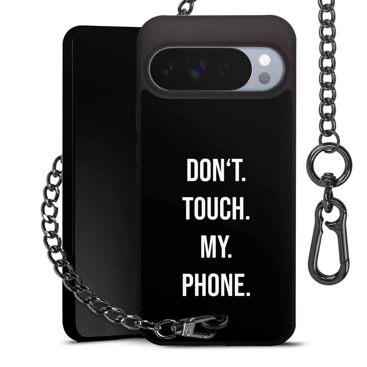 • Mattschwarze Handyhülle mit Metallkette