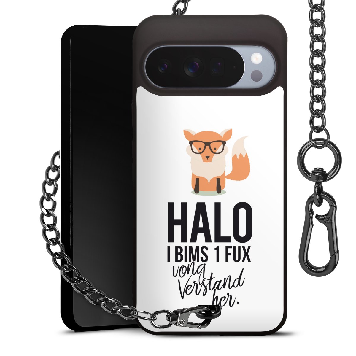 Die mattschwarze Silikon-Handyhülle besteht aus robustem TPU (thermoplastisches Polyurethan). Sie ist flexibel und schützt Dein Smartphone vor Stößen und Kratzern. Die Kette sowie der Karabinerhaken sind aus Metall in Gunmetal-Optik gefertigt. Für dieses Produkt kommen ausschließlich TÜV-geprüfte Materialien zum Einsatz.