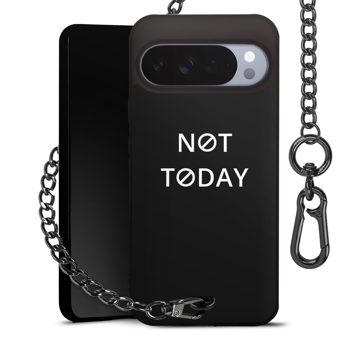 - Mattschwarze Handyhülle mit Metallkette