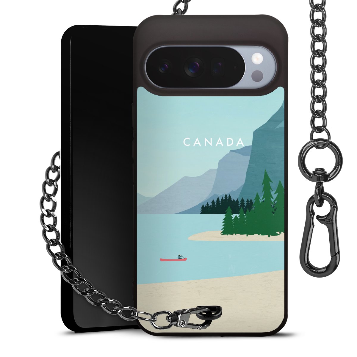 • Mattschwarze Handyhülle mit Metallkette