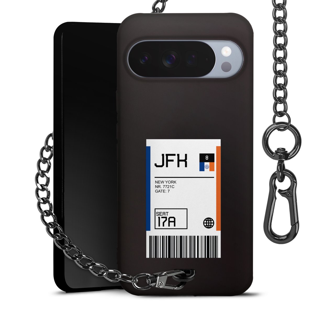 - Mattschwarze Handyhülle mit Metallkette