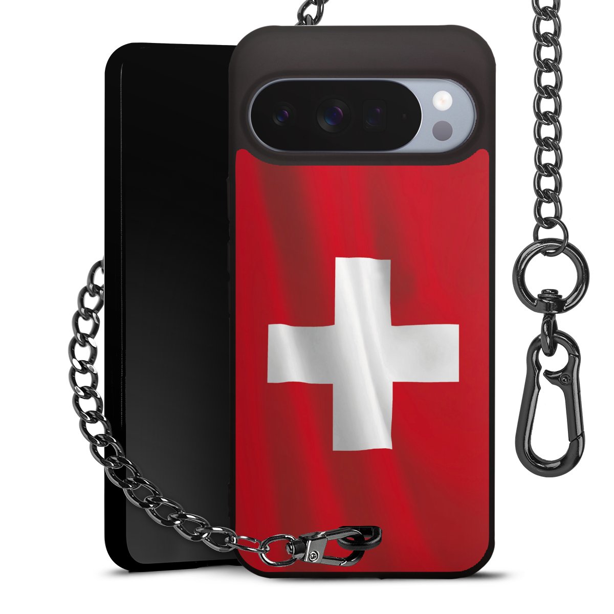 - Mattschwarze Handyhülle mit Metallkette