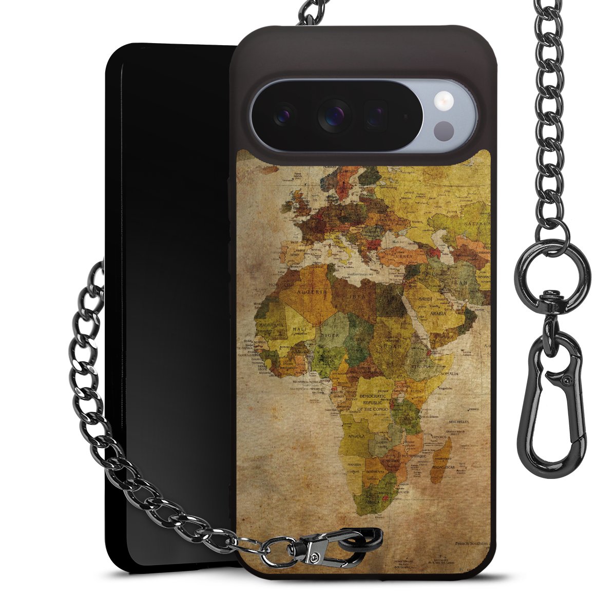 - Mattschwarze Handyhülle mit Metallkette
